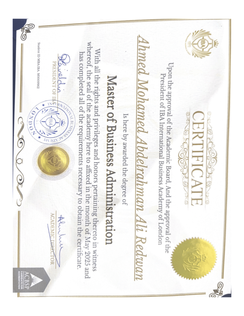 التحليالت المالية والتقارير اإلدارية في قطاعات متعددة. حاصل على ماجستير إدارة األعمال (MBA(من معهد IBA في لندن، والماجستير المهني